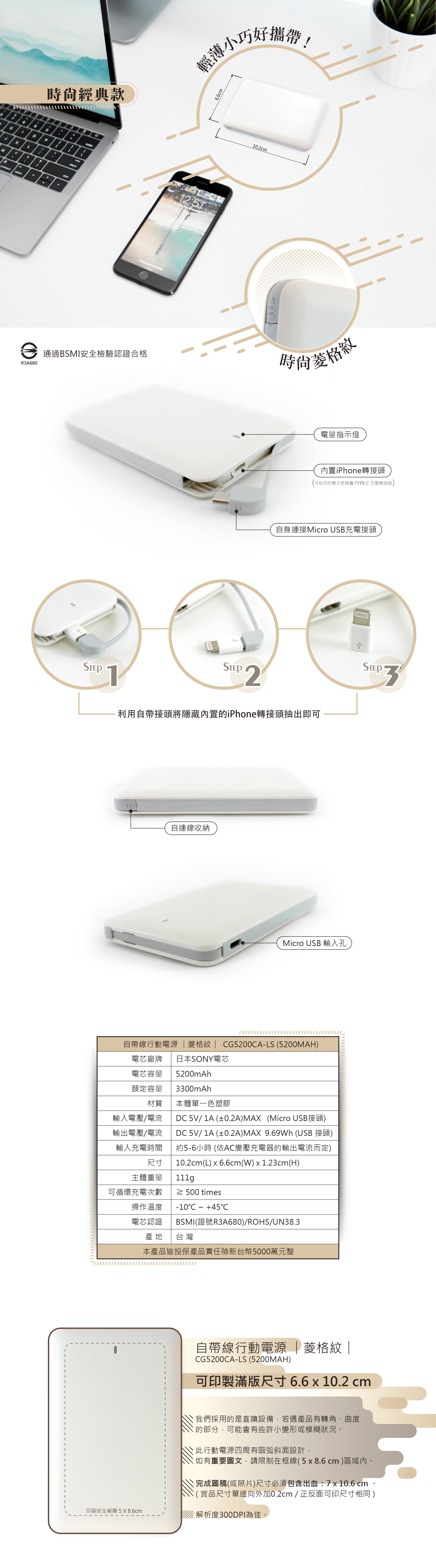 自帶線行動電源 ∣ 菱格紋 ∣ (5200MAH)