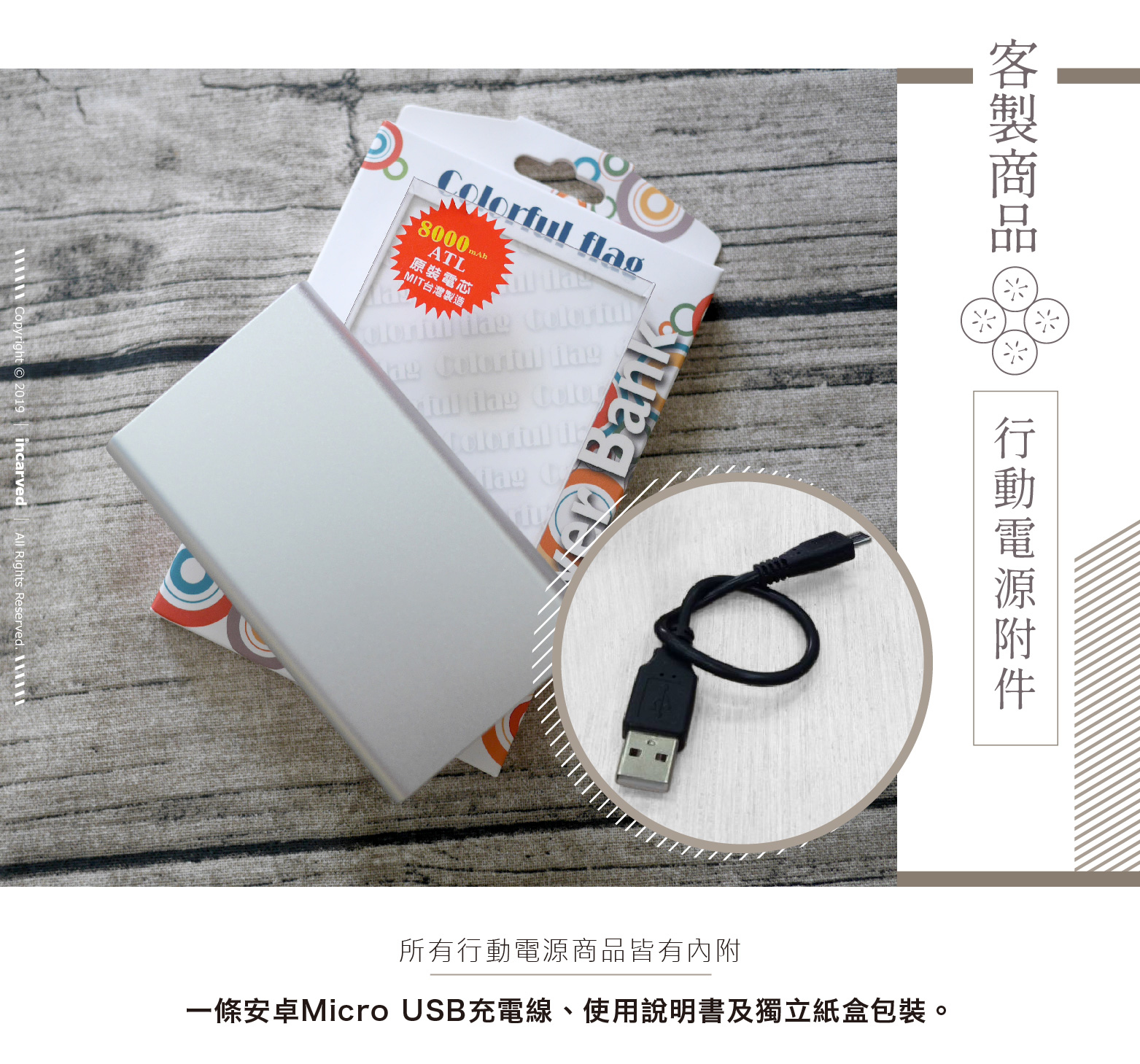 • 滿版雙面印刷的行動電源,因為沒有規格標示,請勿攜帶上飛機。