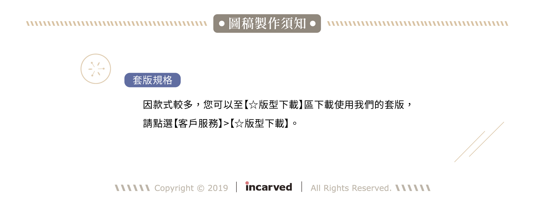 • 請勿使用LINE/FB傳圖片,圖片會被其壓縮,解析度會降低,故務必請將檔案E-MAIL到我們的信箱incarved@gmail.com