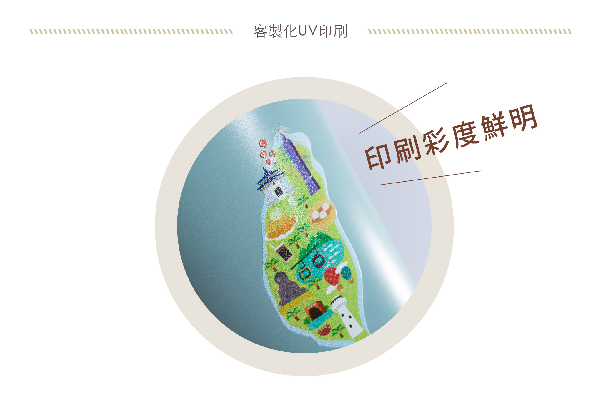 • UV直噴印刷方式,因噴印材質各有差異,是無法校對色彩的,請勿提供Pantone或其他色票要求核對。